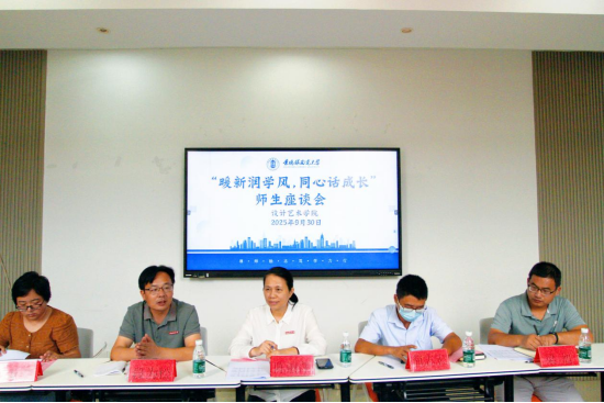 为深入贯彻落实立德树人根本任务,扎实推进“一站式”学生社区建设,助力新生学业启航与成长奠基,9月30日上午,校党委常委、党委统战部部长陈丽萍走进设计艺术学院“一站式”学生社区,出席以“暖新润学风,同心话成长”为主题的师生座谈会,与学院师生代表面对面交流,共话学业规划与成长发展。设计艺术学院党委书记段为松主持会议。党委统战部副部长简志宏、党委统战部民族宗教事务科科长宋蒙蒙,设计艺术学院学工办、团委负责人及辅导员、班主任、学生代表参加座谈。